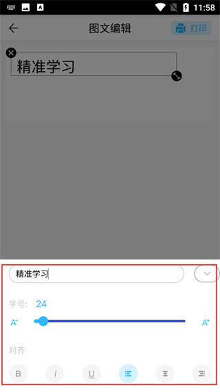 4、完成图文内容的编辑后,点击页面右上角的【打印】按钮,即可执行对应内容的打印操作。