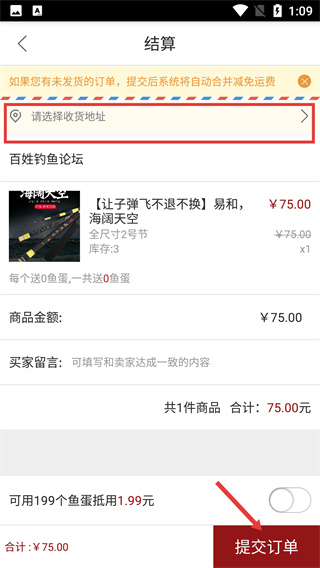 4、进入【结算】页后选【收货地址】,确认商品信息与金额,最后点【提交订单】完成购买。