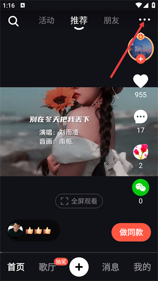 1、在应用的推荐页面,点击右上角的三点按钮,弹出操作选项菜单。