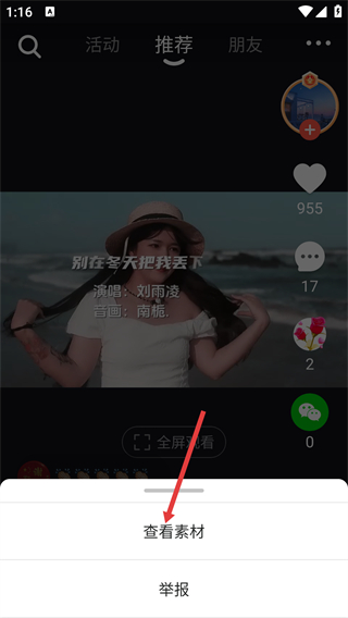2、在弹出的菜单中,选择【查看素材】选项,进入对应内容的素材列表页面。