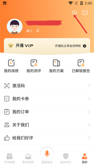 1、进入【我的】页面,找到右上角的【设置】图标并点击,进入软件的设置操作界面,准备开展账号相关配置。