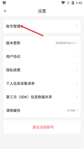 3、进入【账号管理】页面后,找到【注销账号】按钮并点击,进入账号注销的相关操作页面。