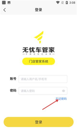 1、进入无忧车管家的登录页面,点击【忘记密码】按钮启动密码重置流程。