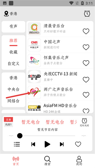 3、具备一键收藏保存喜爱电台与音频节目,打造个性化电台库,方便下次快速查找收听。