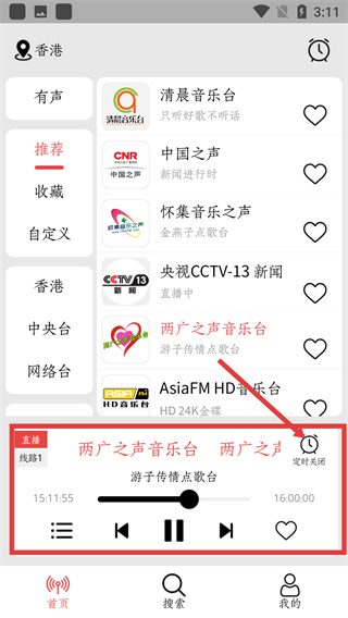 4、允许用户自定义添加电台地址,支持收藏喜爱资源,自由探索个性化内容,满足专属需求。