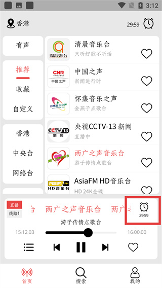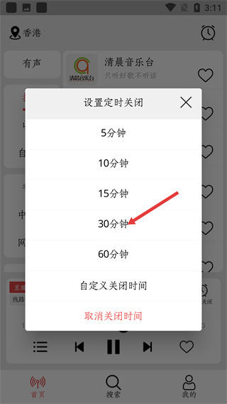 4、完成定时设置后,定时按钮旁会显示剩余时长,电台将按照设定的时间自动关闭播放。