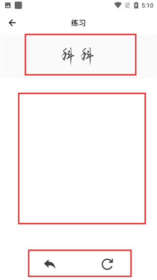 4、在练习界面中,参照上方的示例签名,在下方练习区域进行临摹,可通过操作按钮重置练习内容。