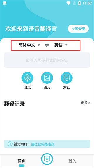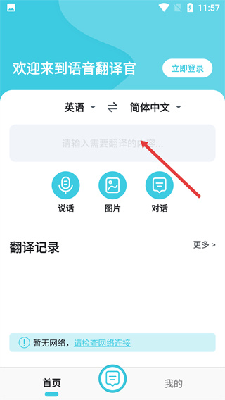 1、进入【语音翻译官】首页,将翻译语言方向调整为【英语→简体中文】,准备输入待翻译文本。