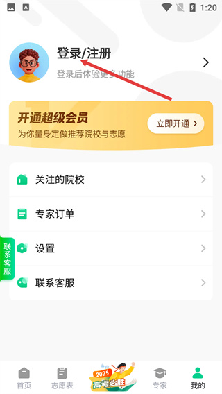 1、在“我的”页面找到【登录/注册】选项并点击,进入登录界面。