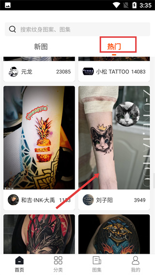 1、进入纹身图案首页的【热门】分类,选定目标纹身图案,点击进入该图案对应的动态详情页面。