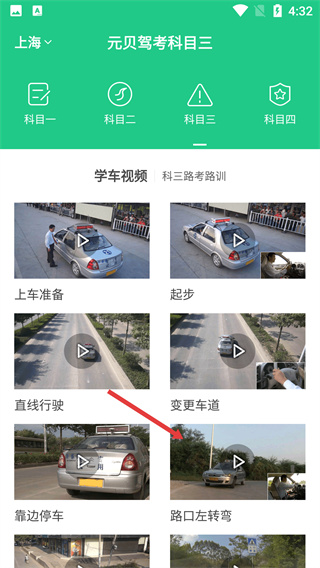 2、在学车视频板块中,下滑页面找到“路口左转弯”对应的视频选项,点击进入该项目的详情页面。