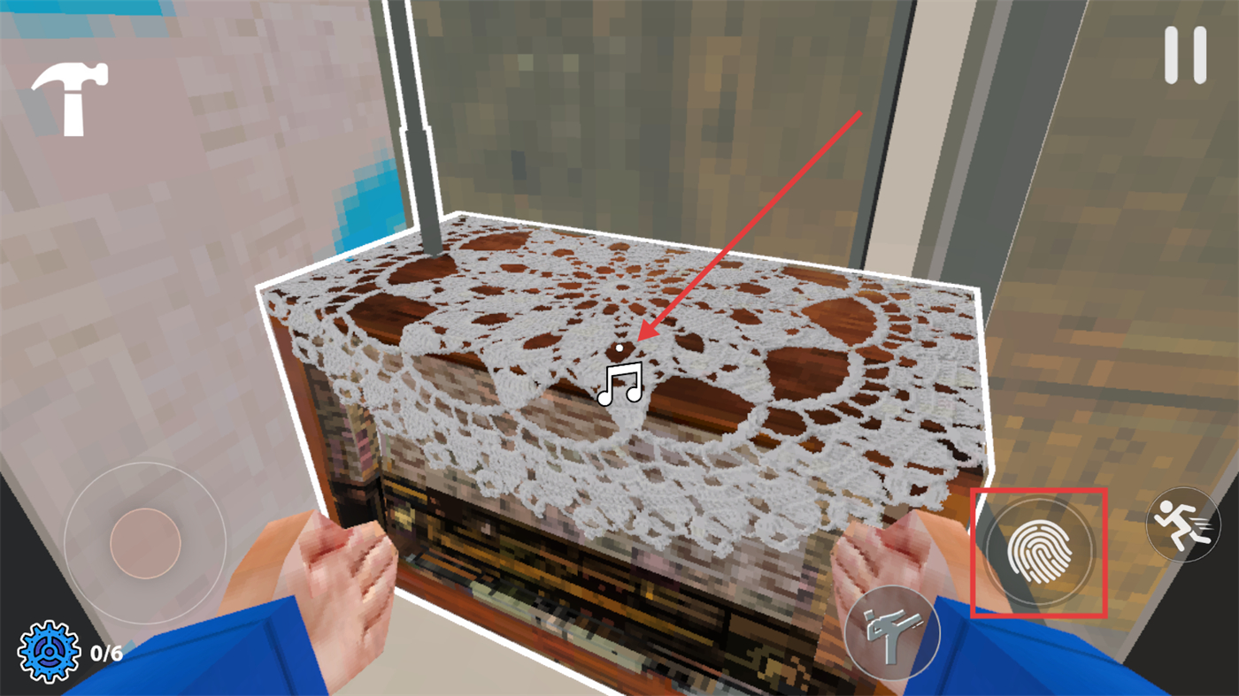 2、走到蕾丝覆盖的音响旁,点击右侧指纹按键与它互动,将音响给打开吧。
