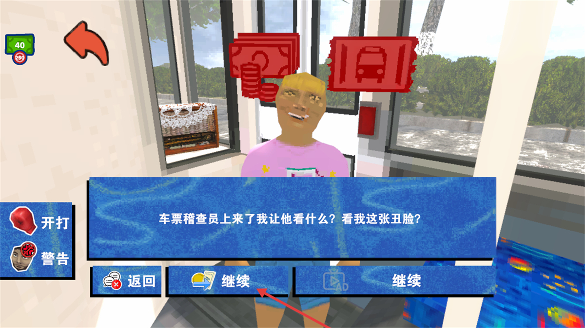 4、面对上前的乘客,点击【继续】按钮推进对话,看看接下来会发生什么有趣的情况哦。