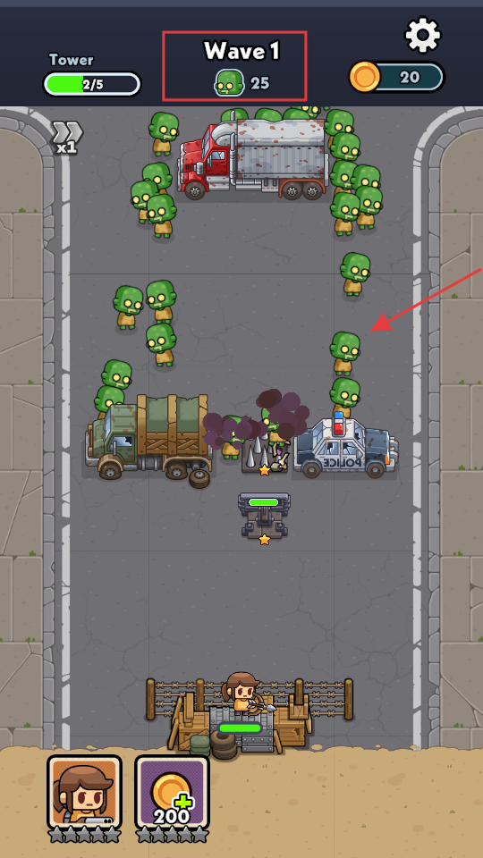 尸潮堡垒这是一款末日背景下抵御僵尸的策略塔防游戏。这款作品以末日僵尸为背景,采用策略塔防玩法,通过布置塔防设施与招募带武器的士兵抵御尸潮冲击;需根据防线状态调整设施摆放应对持续来袭的丧尸,任何失误都可能导致防线被突破进而失败,因此要集中精力安排战局。作品采用简单竖版操作模式,单手指尖微操就能推进关卡,基本不会有过于复杂或紧迫的情况。