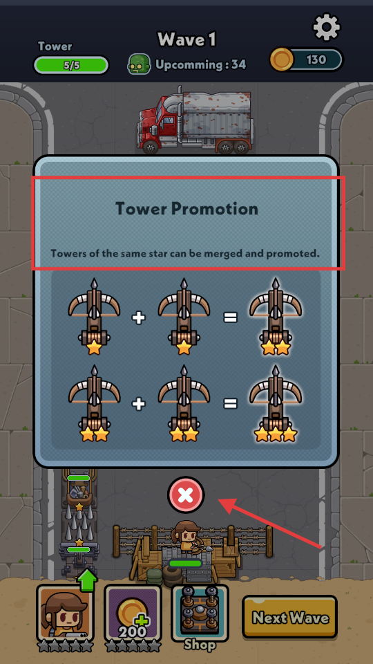 4、TowerPromotion提示同星塔可合并升级,了解规则后关闭弹窗,后续优先合并同星塔提战力。