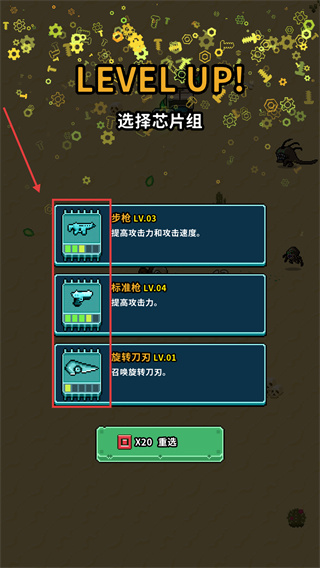3、升级时选择合适的芯片组,如步枪、标准枪或旋转刀刃,增强攻击能力,高效消灭敌人。
