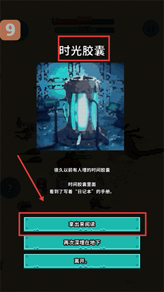 2、遇到【时光胶囊】时,选择【拿出来阅读】,获取“日记本”手册,解锁游戏剧情和资源。