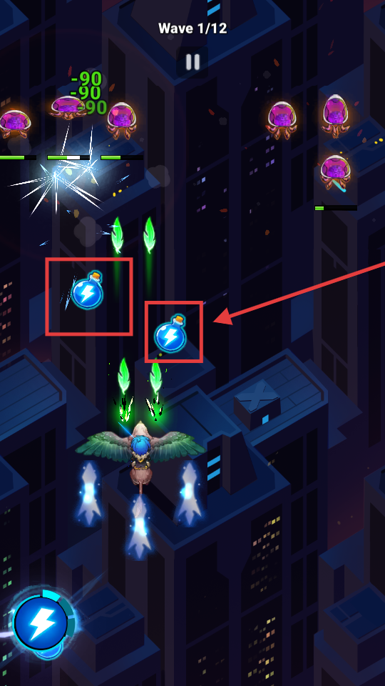 2、战斗中收集【蓝色闪电瓶】,使用后增强角色攻击能力,快速清除剩余敌人,助力推进【Wave1-12】关卡的进程。