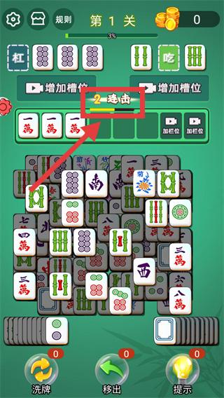 4、连续完成杠、碰、吃操作,触发【连击】,获取额外分数,加速通关。