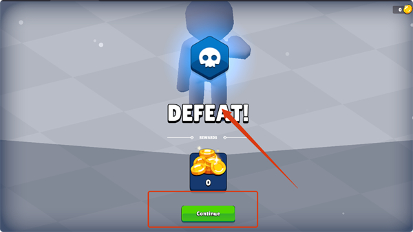 4、若出现【DEFEAT!】界面,点击【Continue】按钮继续游戏,失败后需总结经验,调整战斗策略以获得胜利。