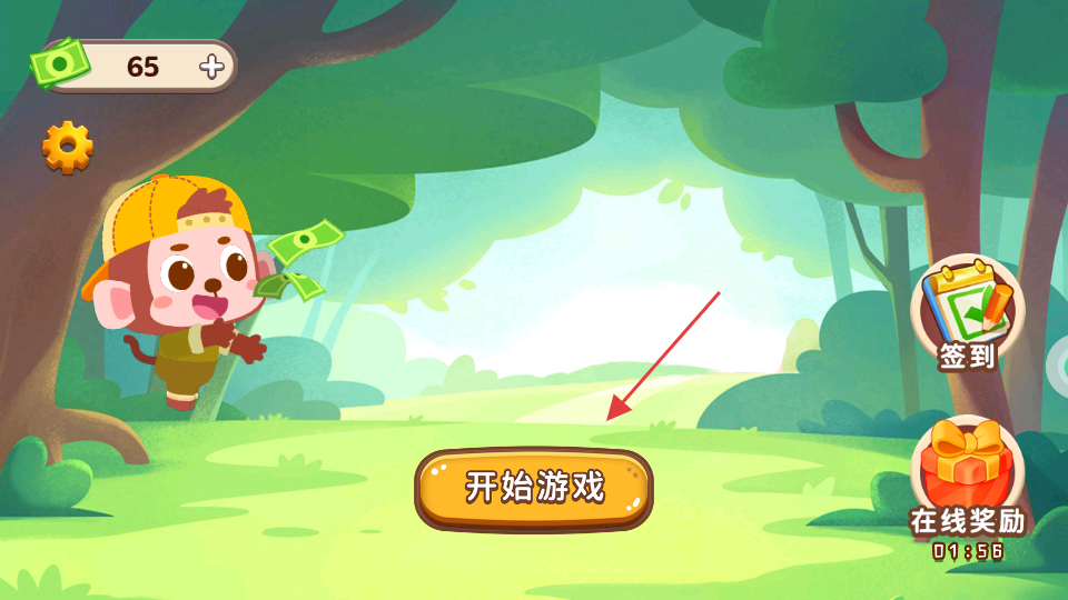 1、点击【开始游戏】进入森林超市经营,可通过【签到】-【在线奖励】获取初始资源为后续运营积累基础。