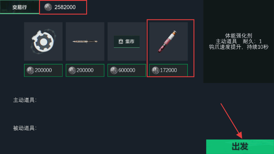 2、交易行中可用【172000】货币购买【体能强化剂】,使用后钩爪速度提升持续10秒。