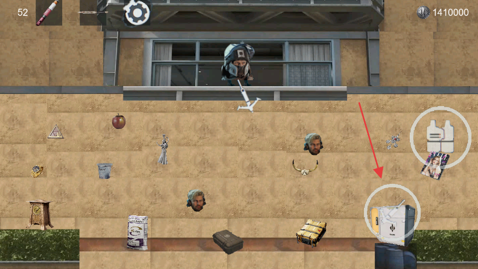 3、移动角色至合适位置,瞄准地面【箱子】-【黄金堆】等高价值物品启动挂钩抓取。