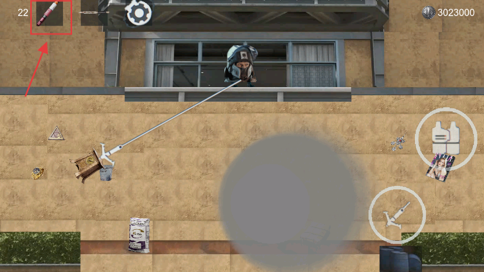 2、滑动屏幕操控深蓝色代理人移动,点击右侧钩爪按钮,精准发射抓取物资。