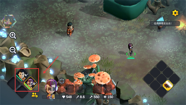 1、在游戏中可切换不同角色,利用角色各自技能,协作完成【從森林裡走出去】的任务。