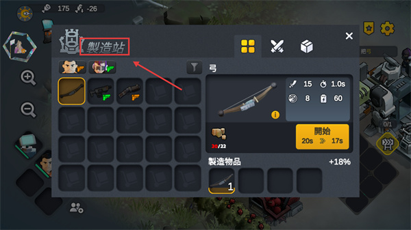 2、利用【製造站】制作弓等武器,提升角色战斗力,以便应对后续战斗。