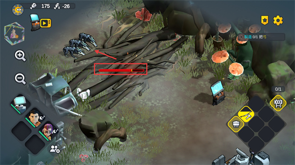 4、摧毁障碍后,与机器人协作,从森林中逃出,完成关卡任务,推进游戏剧情。