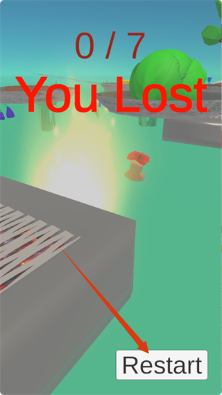 4、若出现【YouLost-0/7】的失败提示,点击【Restart】按钮重新开始游戏,继续挑战。
