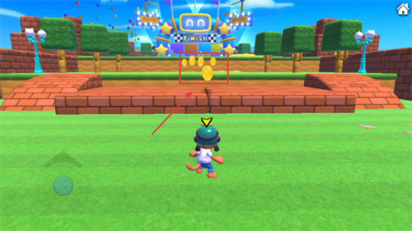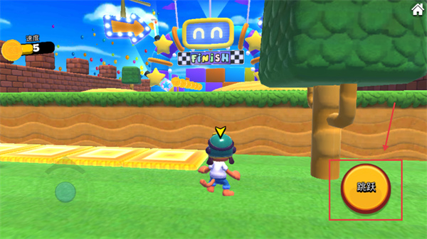2、进入场景后,向带有【FINISH】标识的终点区域移动,途中可收集路径上的金币,提升资源获取量。