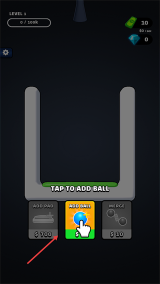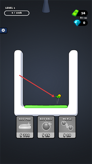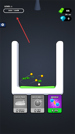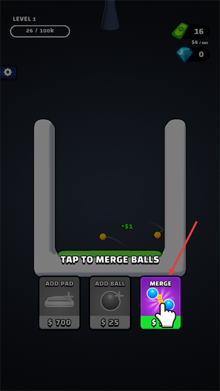 3、容器内有多个同等级弹球时,点击【MERGE】按钮合并弹球,升级后弹球的单次收益会显著提高。