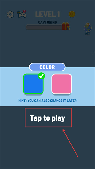 1、选择【COLOR】对应的颜色(如蓝色)后,点击【Tap-to-play】进入关卡,后续也可随时更换颜色。