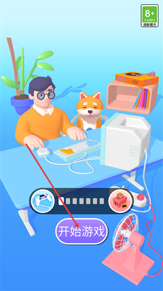 1、进入游戏界面,点击箭头指向的【开始游戏】按钮,可开启当前关卡的互动流程。