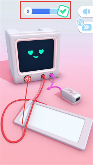 3、接线完成后,设备屏幕显示【爱心图案】,再点击设备开关按钮即可过关。