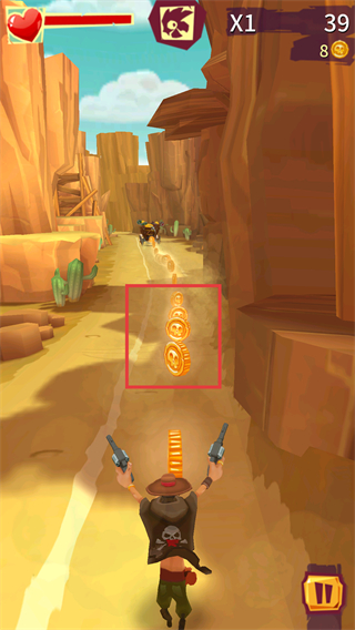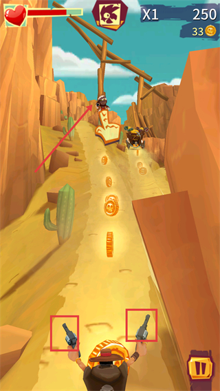3、遇到敌方目标时,使用双枪攻击敌人,同时持续收集金币,规避场景障碍,维持前进与战斗的节奏。