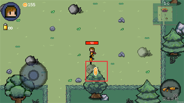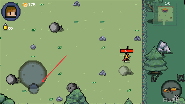 2、移动角色靠近射击目标,也可触发场景切换。