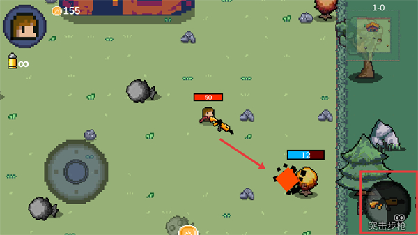 3、战斗时使用【突击步枪】攻击树木,集火输出快速击败目标获取奖励。