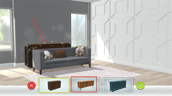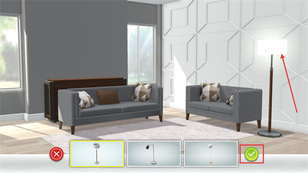 4、最后配置灯具,选中目标款式后点击【√】按钮,完成该件装饰的确认,收尾空间布置流程。