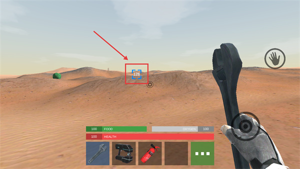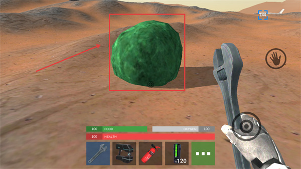 2、游戏中留意带标识的资源点,靠近后用工具交互,收集物资可补充【FOOD】【HEALTH】等状态值。