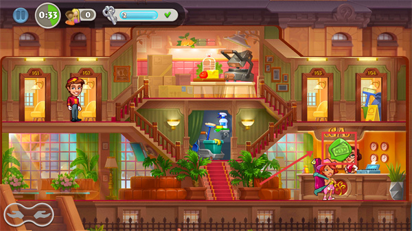 3、完成客房服务后可获得前台的【金币】奖励,积累后可用于升级酒店设施或解锁新服务。
