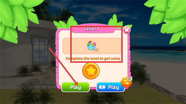 2、进入【Level-1】界面后,点击【Play】按钮开启关卡,依据【Complete-the-level-to-get-coins】的提示完成关卡来获取硬币。