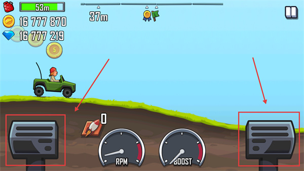4、设置实用的加速减速操控机制,爬坡时按GAS按钮加速,车速过高时按BRAKE按钮减速,助力玩家掌控行驶平衡,驶向更远距离。