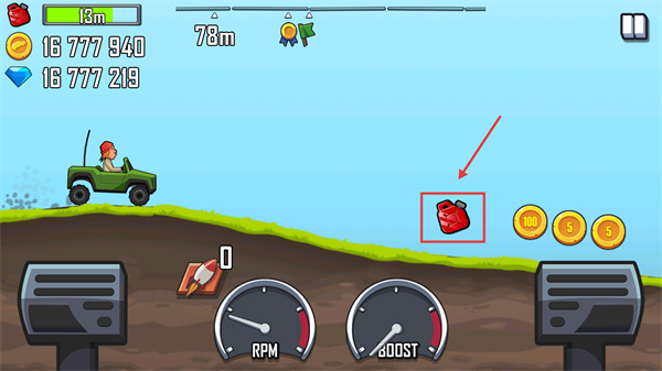 3、行驶中优先收集【燃油道具】补充续航,同时拾取金币资源,保障关卡进程与资源积累。