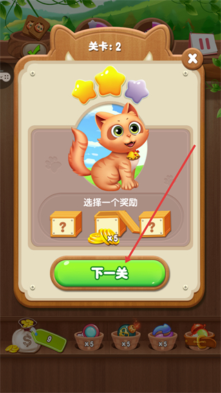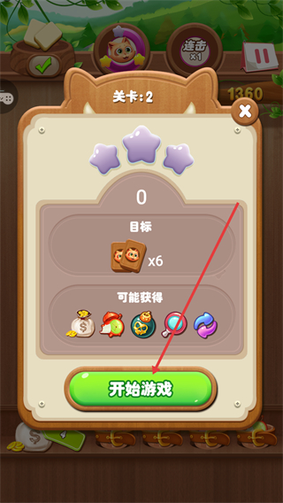 1、点击【开始游戏】进入【关卡2】,目标收集6个【小猫头像】,开启趣味消除挑战。