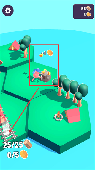 1、优先砍伐周边树木积累初始木材,再转向金山收集金币,后期利用兑换所获取金块,逐步满足列车建造需求。