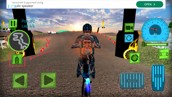 3、使用【NOS】道具能短时间提升车速,在直道或追赶对手时使用,可快速拉近名次差距。