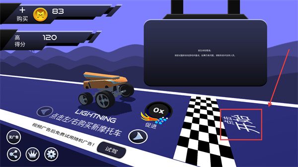 1、点击红框内的按钮开始游戏,也可点击【试驾】体验新载具。